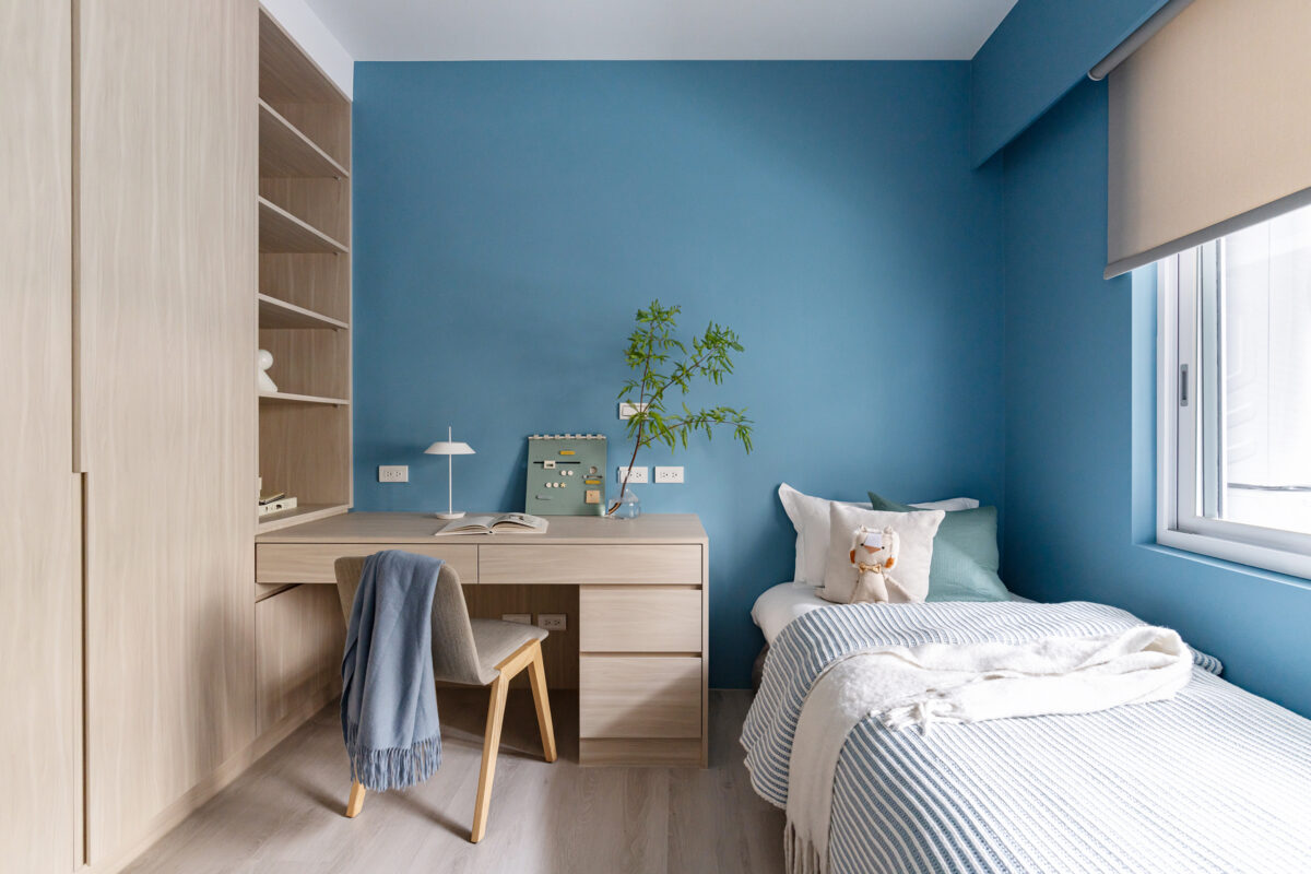 小孩房選用藍灰色配木質調,